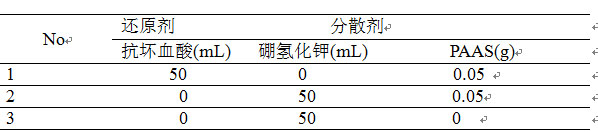 摘 要:以硝酸銀為原料,PAAS(聚丙烯酸鈉)為分散劑,硼氫化鉀為還原劑,采用還原法成功地制備納米銀。通過(guò)X-射線(xiàn)衍射分析儀(XRD)和透射電子顯微鏡(TEM)對(duì)納米銀進(jìn)行了表征,結(jié)果顯示,在水溶
