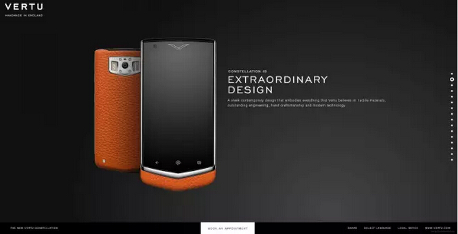 Vertu是諾基亞所成立的全球一家奢侈手機公司,以經(jīng)營高檔品牌的方式,由世界著名的手機設計師FrankNuovo設計。該品牌的機型從外觀、用料到功能都稱得上有王者風范,平均每款售價更是高達十幾萬元人民幣。2012年,諾基亞將Vertu品牌90%的股權出售給了瑞典投資公司EQT,但易手后的Vertu在銷售上并未獲得大的起色。