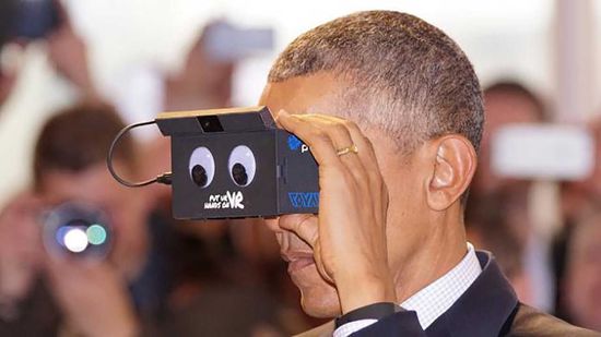 路透社報(bào)道:奧巴馬總統(tǒng)在戴上PMD科技(谷歌深度傳感項(xiàng)目Tango的合作伙伴)的Cardboard新型頭顯后表示,“這為我們開創(chuàng)了一個(gè)全新的世界。”
