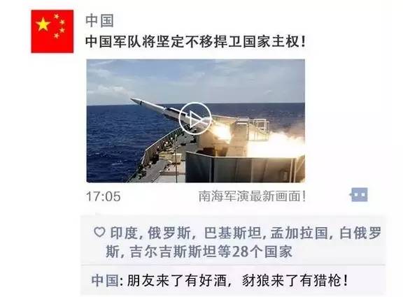 對(duì)于屬于中的南海,中可以堂堂正正地、強(qiáng)硬有力地強(qiáng)調(diào)主權(quán),可以大聲說:朋友來了有好酒,豺狼來了有獵槍!不再像清朝政府那樣,一再賠款割地,喪權(quán)辱。