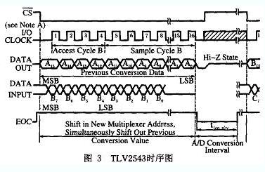 TLC2543是TI公司的帶串行控制和11個(gè)輸入端的12 位、開關(guān)電容逐次逼近型A/D轉(zhuǎn)換器。 片內(nèi)轉(zhuǎn)換器有高速、高精度和低噪音的特點(diǎn)。 TLC2543工作過(guò)程分為兩個(gè)周期:I/O周期和轉(zhuǎn)換周期。I/O周期由外部時(shí)鐘SCLK決定,延續(xù)8、12或16個(gè)時(shí)鐘周期,同時(shí)進(jìn)行兩種操作: 在SCLK上升沿以MSB方式輸入8位數(shù)據(jù)到片內(nèi)寄存器;在SCLK下降沿以MSB 方式輸出8、12、16位轉(zhuǎn)換結(jié)果。轉(zhuǎn)換周期在I/O周期的后一個(gè)SCLK下降沿開始,直到EOC信號(hào)變高,指示轉(zhuǎn)換完成。 為了與TLV5618的I/O周期一致,采用了MSB方式,使用CS的16 時(shí)鐘傳送的時(shí)序。其操作時(shí)序如圖3 所示。杭州PCB|杭州smt