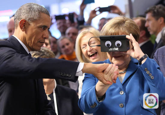 美和歐盟之間的貿(mào)易協(xié)議在不斷地增多, 而美總統(tǒng)奧巴馬和德總理默克爾在今天參觀了一年一度的漢諾威工業(yè)展。 兩位元首嘗試使用了被譽(yù)為“世界上小的3D相機(jī)”的虛擬現(xiàn)實(shí)頭顯。