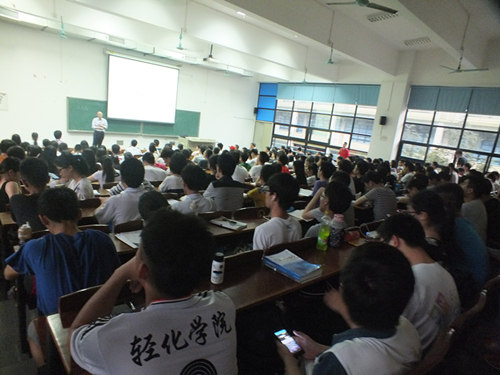 2016年4月26日晚,在大學(xué)城教五202教室,應(yīng)廣東工業(yè)大學(xué)輕工化工學(xué)院邀請,廣東省PCB行業(yè)協(xié)會會長辛勝先生以及副秘書長、廣東興達鴻業(yè)執(zhí)行副總裁沈方斌先生等一行四人作客由輕工化工學(xué)院承辦的學(xué)校124期就業(yè)講壇,并由沈方斌先生作了主題為“未來30年,你在走向成功的路上”的專題講座。輕工化工學(xué)院黨委蘇兆祥副書記、陳世榮老師(廣東省PCB行業(yè)協(xié)會副秘書長)、輔導(dǎo)員李韻捷老師以及兩百多名學(xué)生一同聆聽了講座。